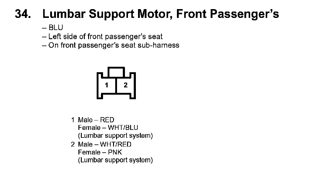 34. Lumbar Support Motor, Front Passenger's: