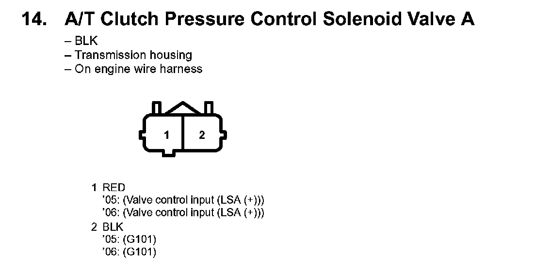 14. A/T Clutch Pressure Control Solenoid Valve A: