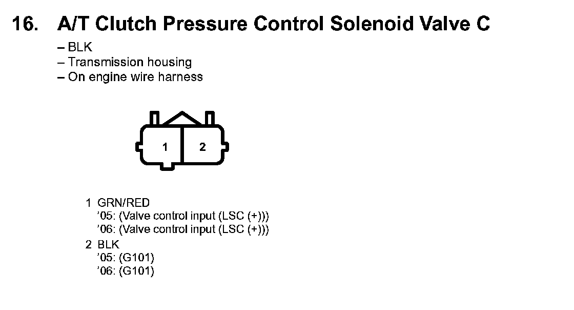 16. A/T Clutch Pressure Control Solenoid Valve C: