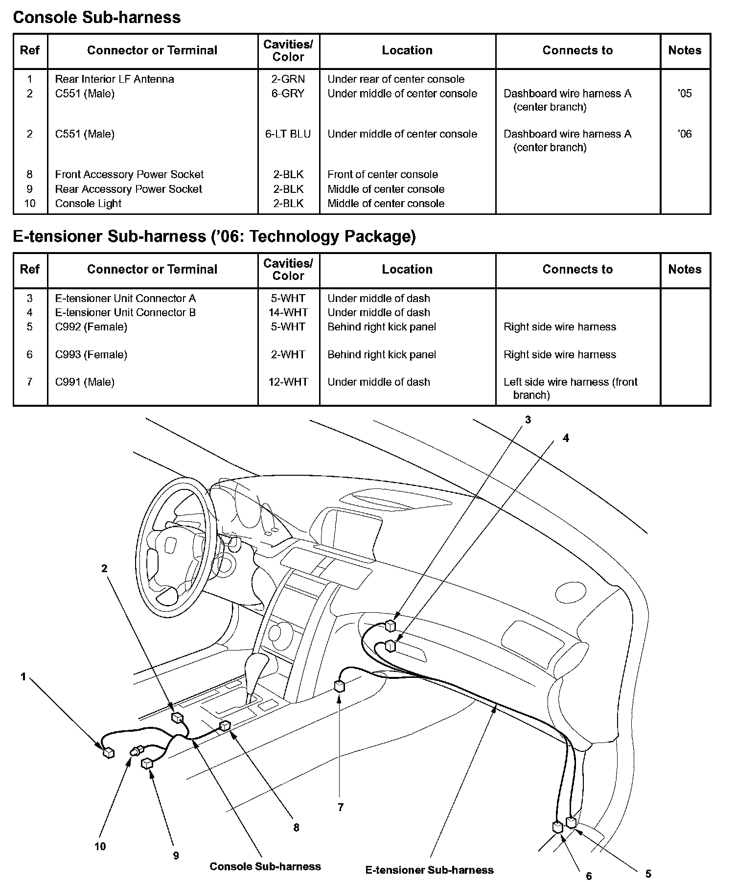 Console Sub-harness/E-tensioner Sub-harness ('06: Technology Package):