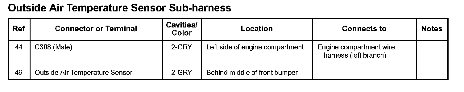 Outside Air Temperature Sensor Subharness: