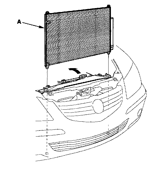 11. Install the A/C condenser in the reverse order of removal, and note these items: