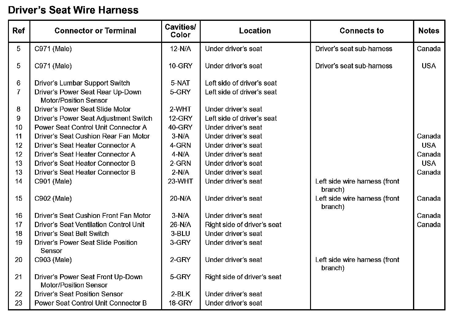 Driver's Seat Wire Harness:
