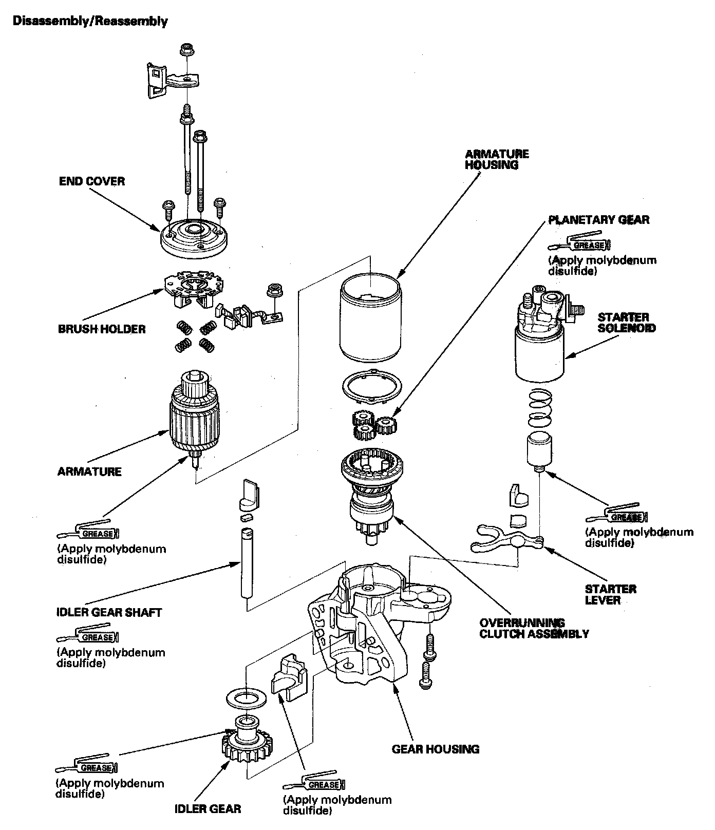5. Disassemble the starter as shown at the beginning of this procedure.