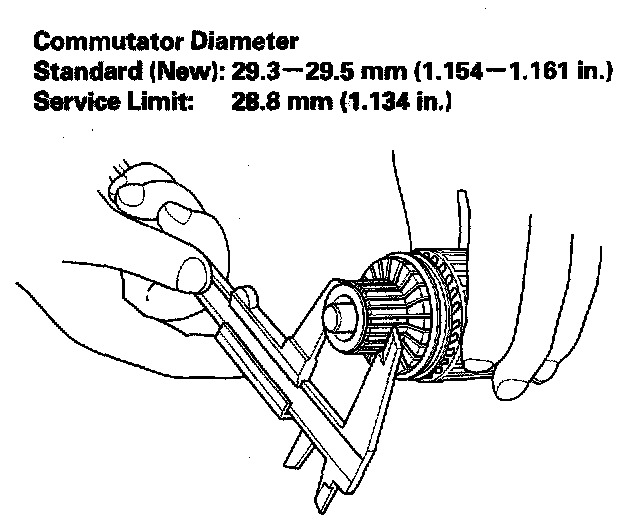 8. Check the commutator diameter. If the diameter is out of the service limit, replace the armature.