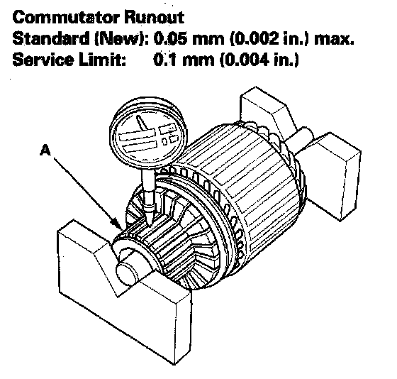 - If the commutator runout is within the service limit, check the commutator for carbon dust or brass chips between the segments.