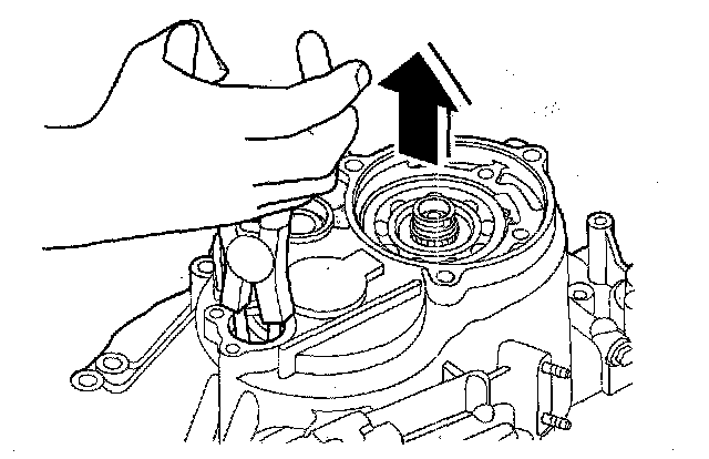 21. While expanding the snap ring of the countershaft bearing using the snap ring pliers, lift the transmission housing.