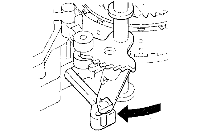 4. Install the main valve body (seven 6 mm bolt and three 8 mm bolts). Make sure the ATF pump drive gear (A) rotates smoothly in the normal operating direction, and the ATF pump driven gear shaft (C) moves smoothly in the axial and normal operating direction.