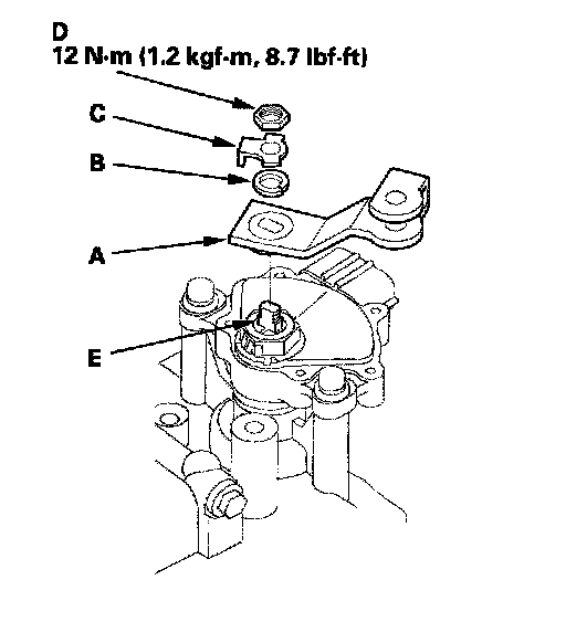 70. Install the new O-ring (D) on the output shaft (countershaft) speed sensor (E), and install the output shaft (countershaft) speed sensor.