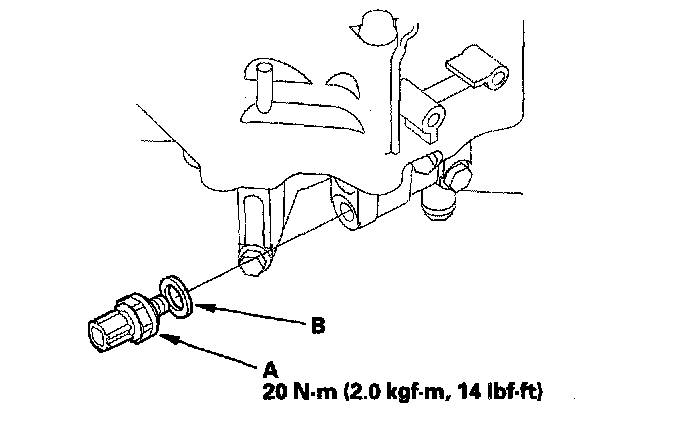 76. Install the 2nd clutch transmission fluid pressure switch (A) with the new sealing washer (B). Tighten the switch with the metal part.