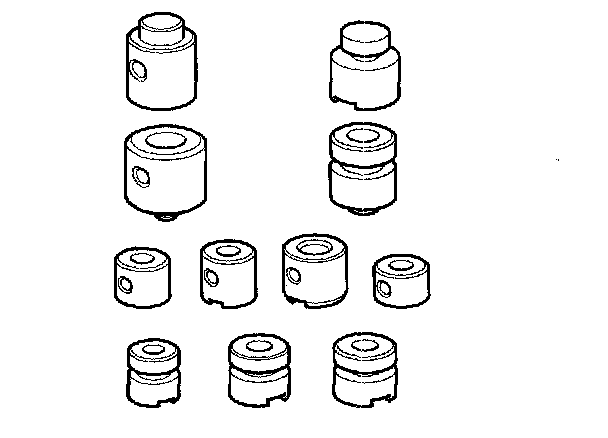 2. Install the valves and springs in the sequence shown for the main valve body, secondary valve body, regulator valve body, and accumulator body. Refer to the following valve cap illustrations, and install each valve cap so the end shown facing up will be facing the outside of the valve body, then secure the valve cap with the valve cap clip.