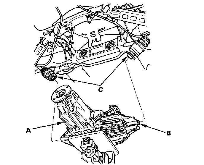3. Apply multipurpose grease to the splines of the rear driveshafts (C), then install the rear driveshafts to the rear differential.