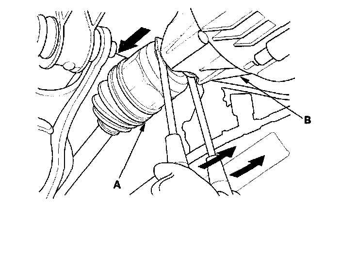 5. Using a pair of screwdrivers, pry out both inboard joints (A) from the differential (B).