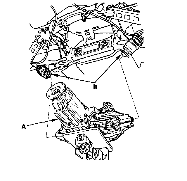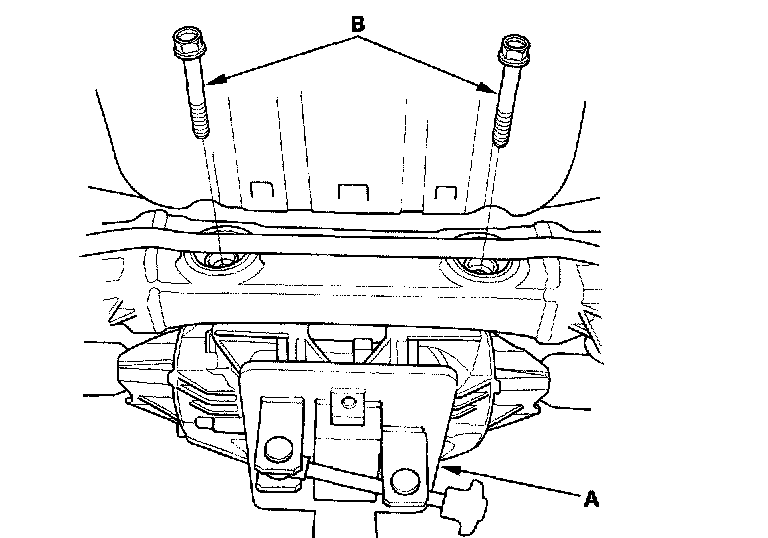 7. Remove the differential's rear mounting bolts (B).