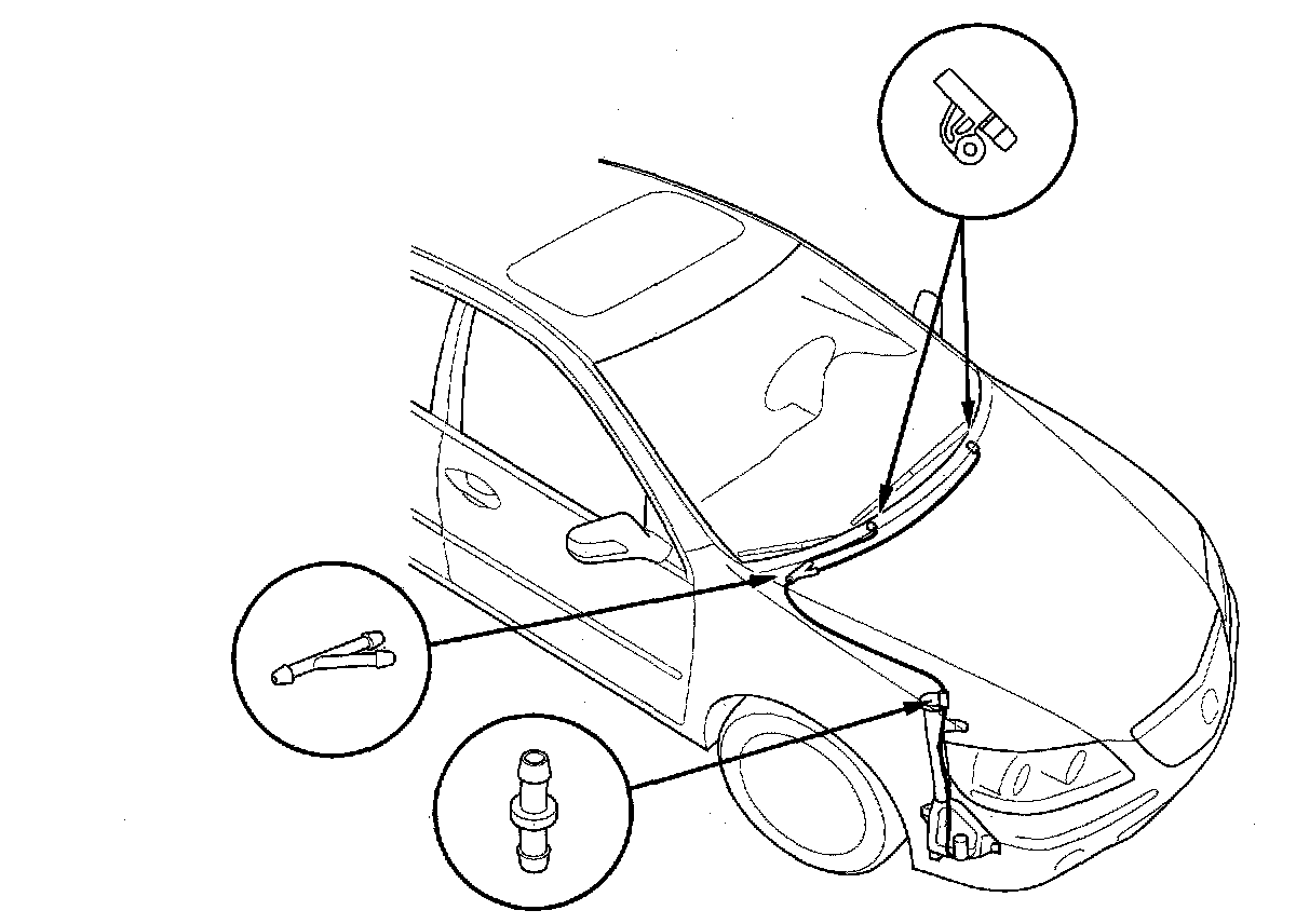 2. Remove the windshield washer nozzles and clips, then remove the tube.
