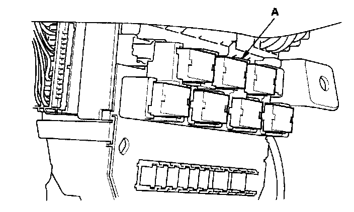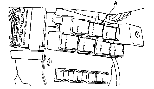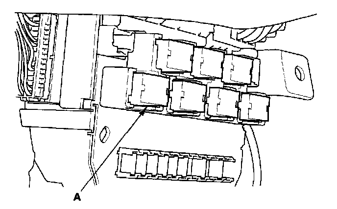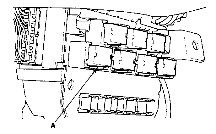 26. Remove the left kick panel, then remove PGM-FI main relay 1 (FI MAIN) (A) from the under-hood fuse/relay box.