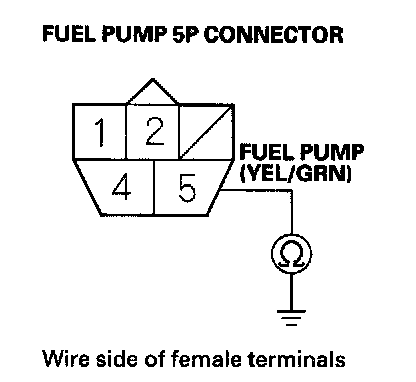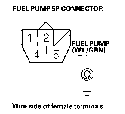 41. Check for continuity between fuel pump 5P connector terminal No.5 and body ground.