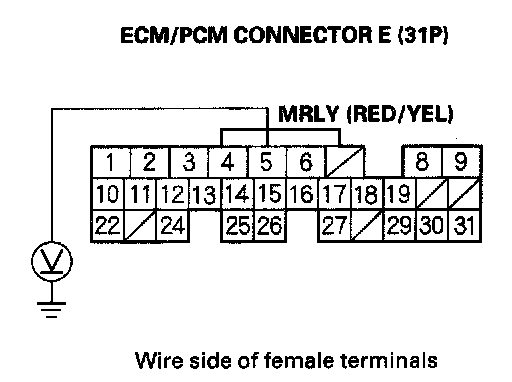 30. Check for continuity between PGM-FI main relay 1 (FI MAIN) 4P connector terminal No.1 and body ground.