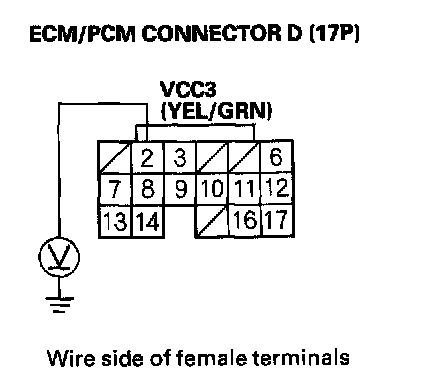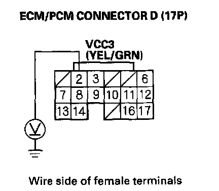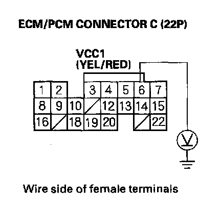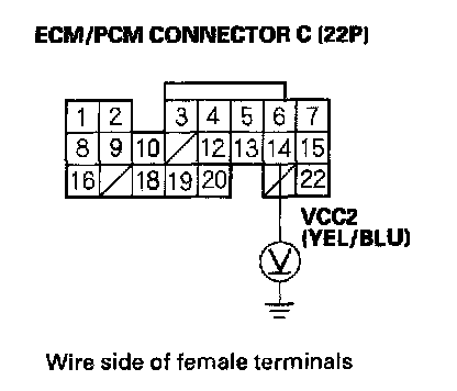 73. Disconnect the connector from each of these parts, one at a time, and measure voltage between ECM/PCM connector terminal C14 and body ground with the ignition switch ON (II).