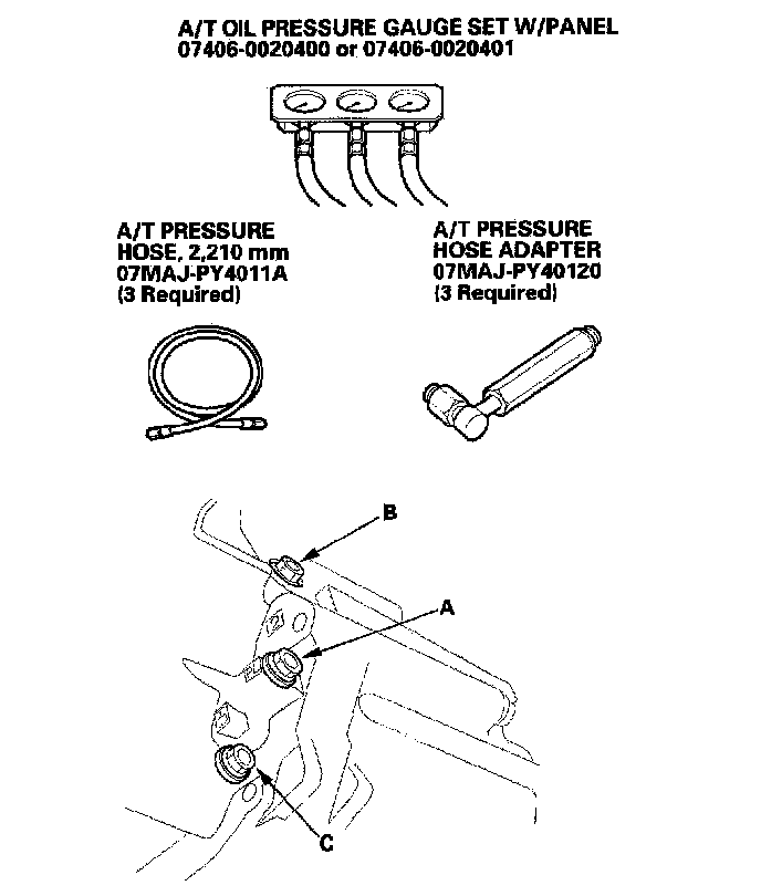- A/T oil pressure gauge set 07406-0020400 or 07406-0020401