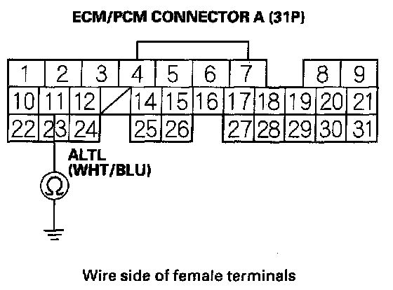 10. Check for continuity between ECM/PCM connector terminal A11 and body ground.