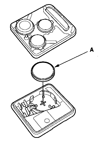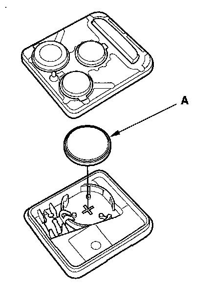 6. Replace the transmitter battery (A) with a new one, and try to lock and unlock the doors with the transmitter by pressing the lock or unlock button five or six times.