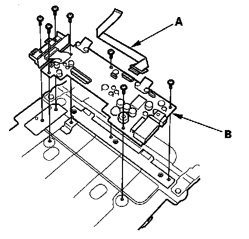 9. Disconnect the cable (A), then remove the screws and the rear control main printed circuit board (B).