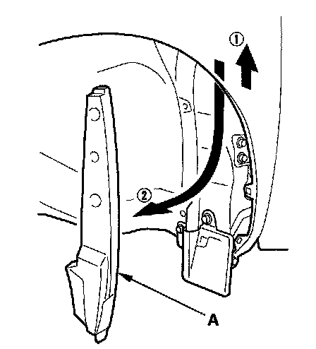 2. Pull out and remove the front fender fairing (A).