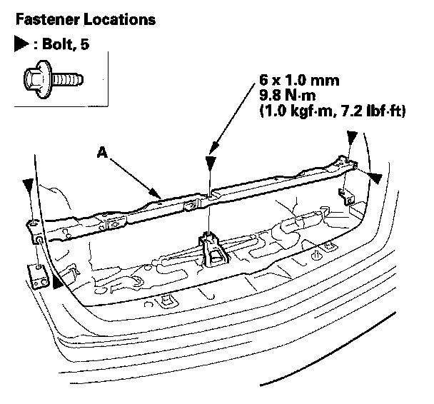 3. Remove the bolts, then remove the cargo lid support (A).