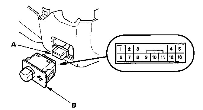 2. Disconnect the 13P connector (A) from the power tilt/telescopic steering switch (B).
