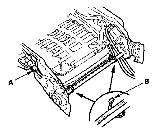 3. Driver's seat: Disconnect the lumbar support motor connector (A), and remove the wire ties (B).