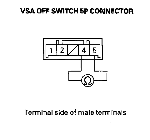 5. Check for continuity between the VSA OFF switch 5P connector terminal No. 4 and No. 5. There should be continuity at all times.