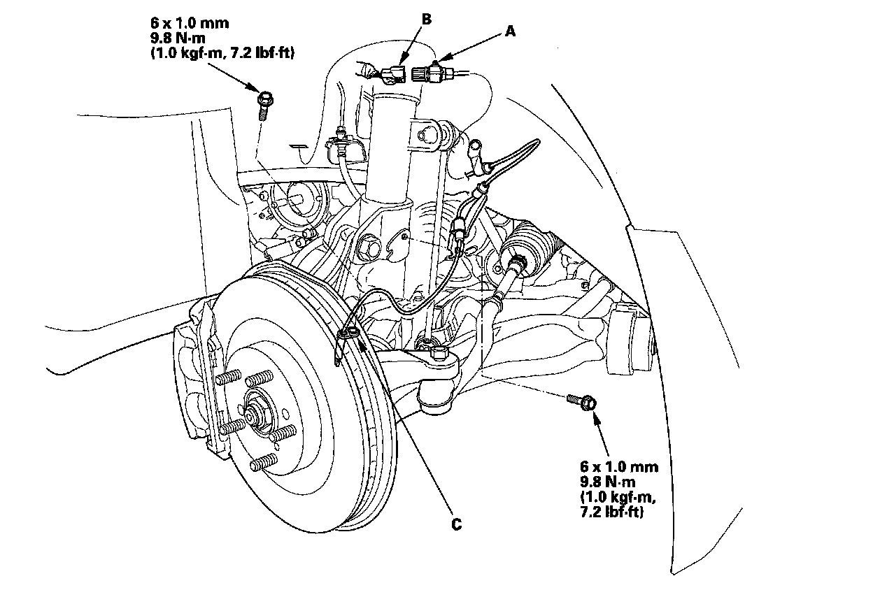 ^ If the wheel sensor comes in contact with the hub bearing unit, it is faulty.