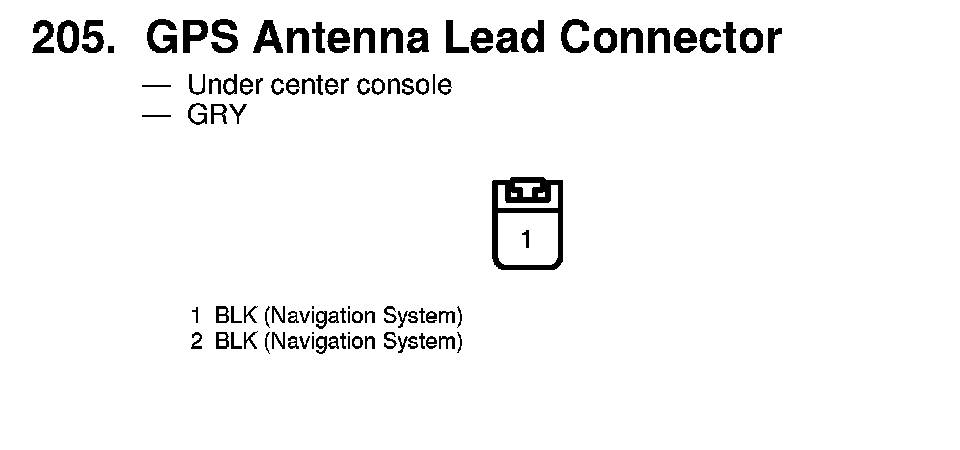 205. GPS Antenna Lead Connector: