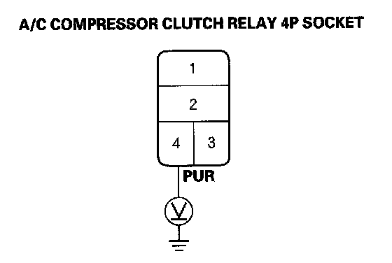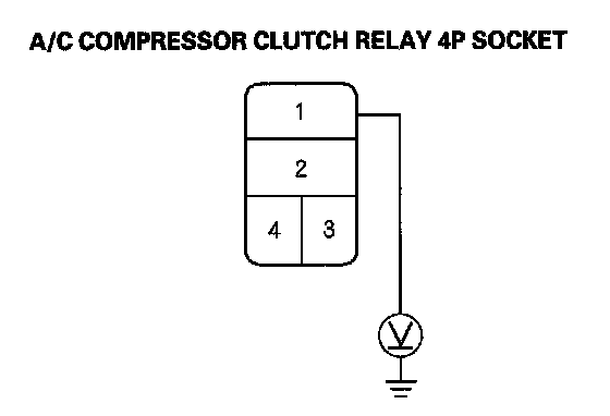8. Measure the voltage between the A/C compressor clutch relay 4P socket terminal No. 1 and body ground.