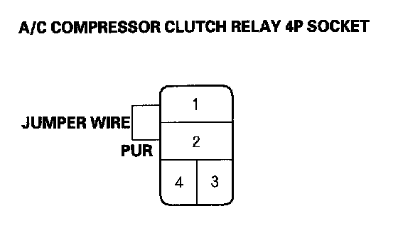 9. Connect the A/C compressor clutch relay 4P socket terminals No. 1 and No. 2 with a jumper wire.