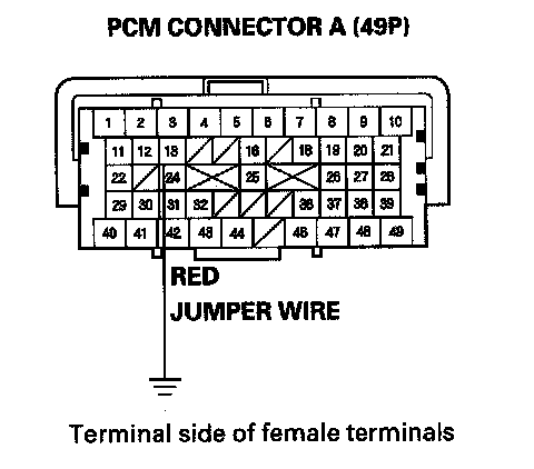 17. Connect PCM connector A (49P) terminal No. 13 to body ground with a jumper wire.