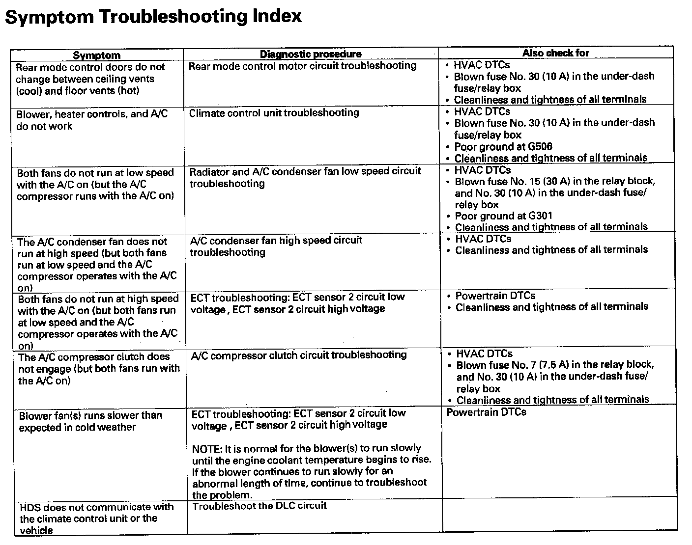 Symptom Troubleshooting Index: