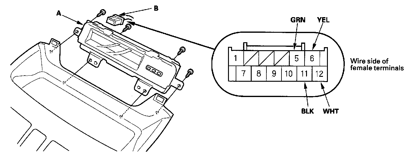 4. Disconnect the 12P connector (B) from the center information display.