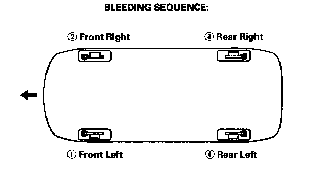 NOTE: Bleed the calipers or the wheel cylinders in the sequence shown.