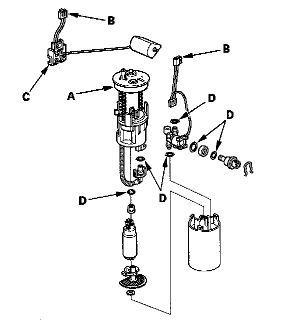 - When installing the fuel gauge sending unit (C), make sure the connection is secure and the connector is firmly locked into place. Be careful not to bend or twist it excessively.