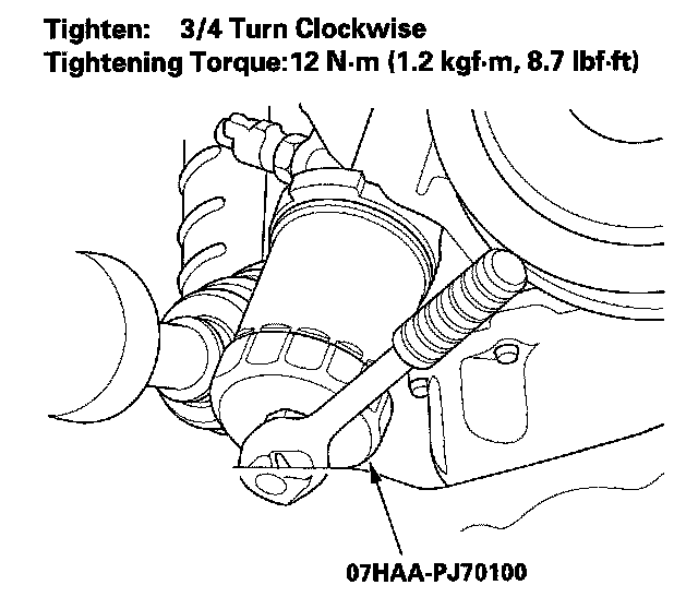 5. After the rubber seal seats, tighten the oil filter clockwise with the oil filter wrench.
