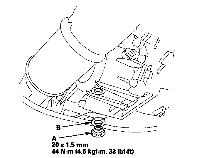 5. Remove the drain plug (A) and drain the transfer fluid (hypoid gear oil).