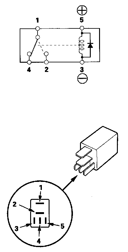 - There should be continuity between the No. 1 and No. 2 terminals when battery positive terminal is connected to the No. 5 terminal, and battery negative terminal is connected to the No. 3 terminal.
