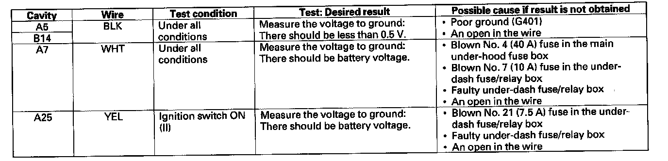 6. Reconnect the connectors, and make these input tests at the connectors.