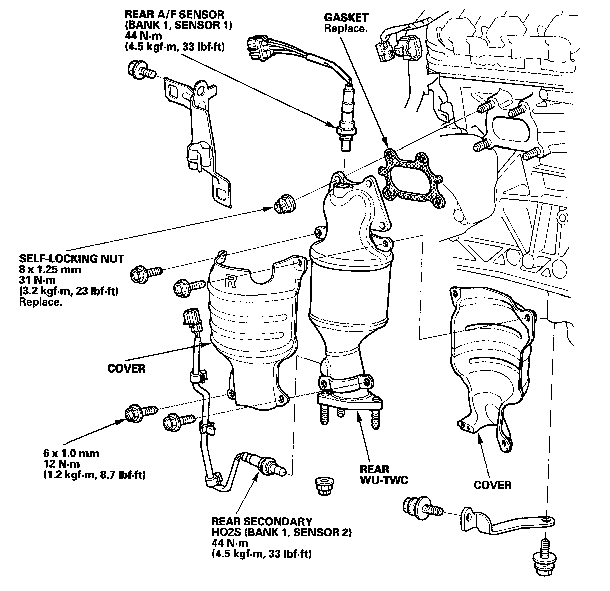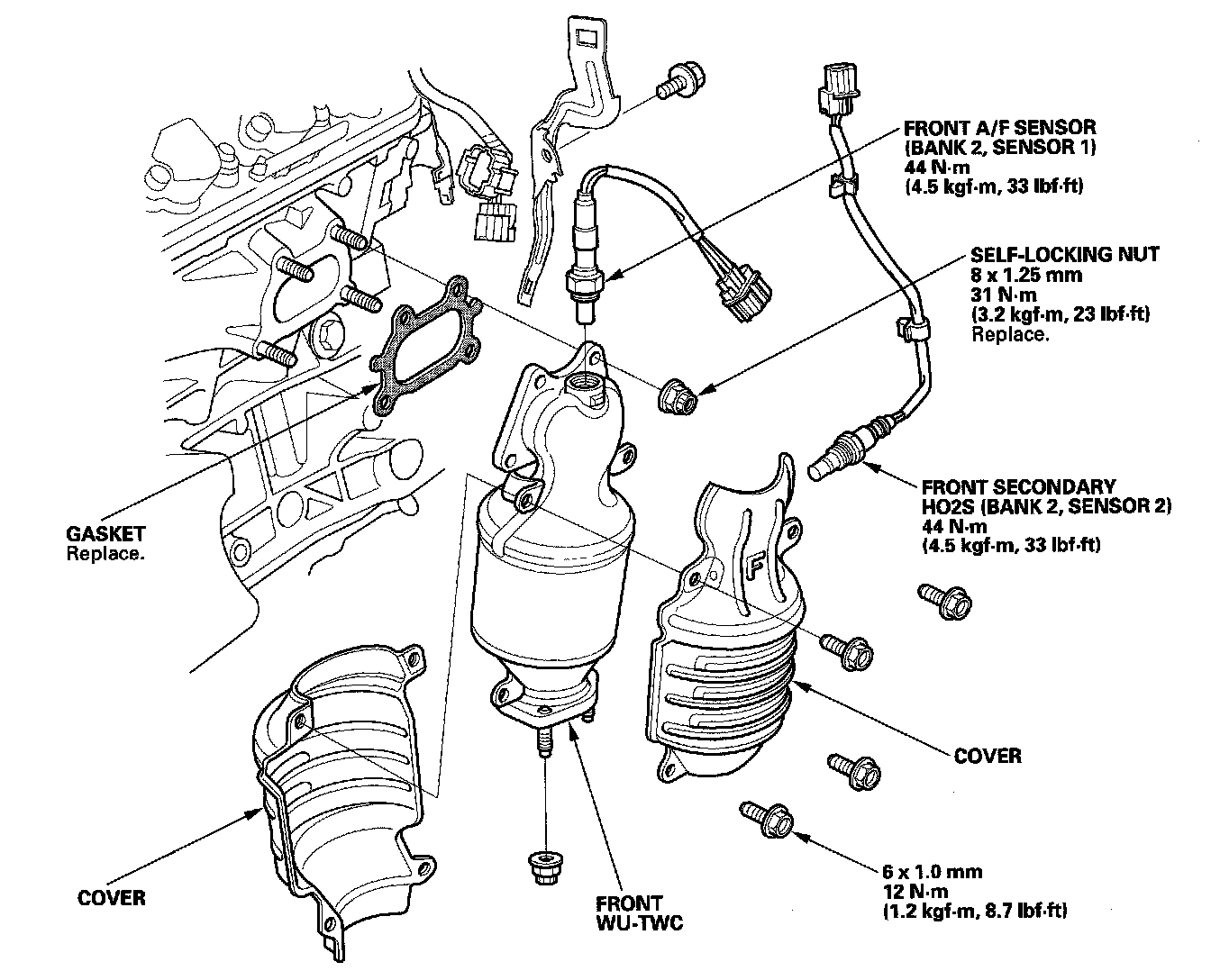 2. Disconnect the front air fuel ratio (A/F) sensor connector and front secondary heated oxygen sensor (secondary HO2S) connector.