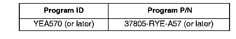 The updated PGM-FI software program ID and P/N is shown below. If this, or a later program ID, is the Current Program ID displayed during the update, the software for this service bulletin is already installed.