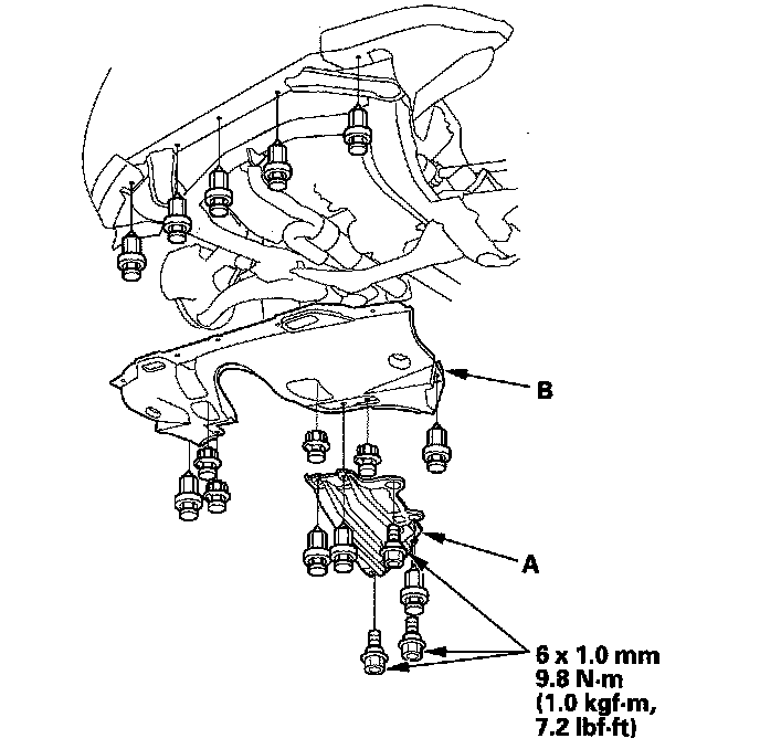 5. Disconnect the ATF temperature sensor connector (A) then remove the connector from the connector bracket (B).