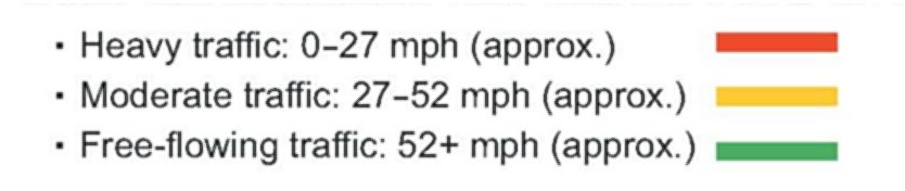 Color bands indicate how fast the traffic is moving: