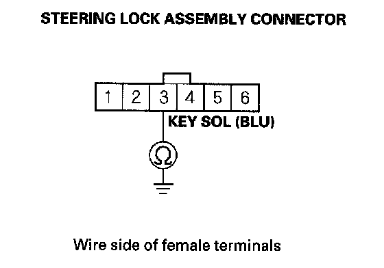 6. Check for continuity between steering lock assembly connector terminal No. 3 and body ground.